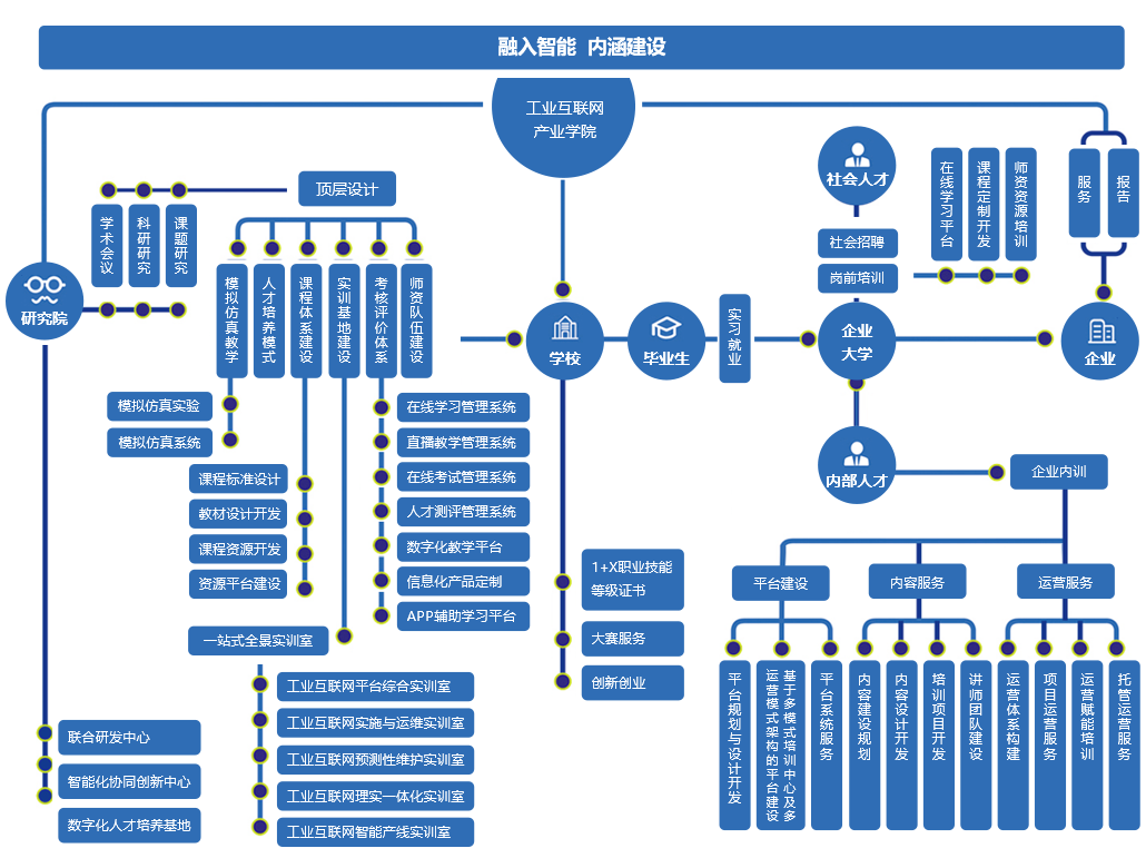 提供工業(yè)互聯(lián)網(wǎng)、智能制造方向的針對(duì)性教師培訓(xùn)方案;企業(yè)優(yōu)秀人才和院校優(yōu)秀教師互兼互聘;校企導(dǎo)師組建混編師資團(tuán)隊(duì)聯(lián)合授課。