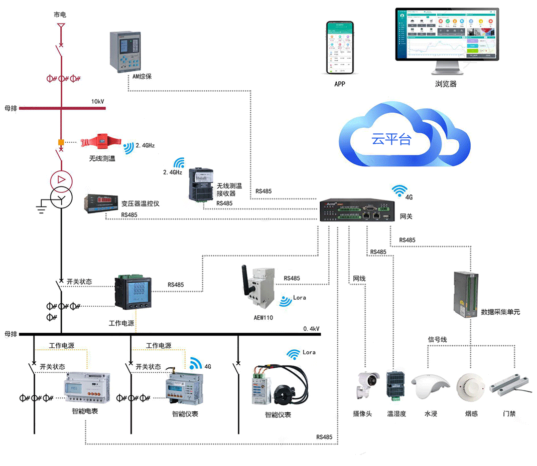 高壓開關(guān)柜監(jiān)測(cè):實(shí)時(shí)監(jiān)測(cè)高壓開關(guān)柜的斷路器、隔離開關(guān)、負(fù)荷開關(guān)、電流值等參數(shù),對(duì)于重要的參數(shù)。