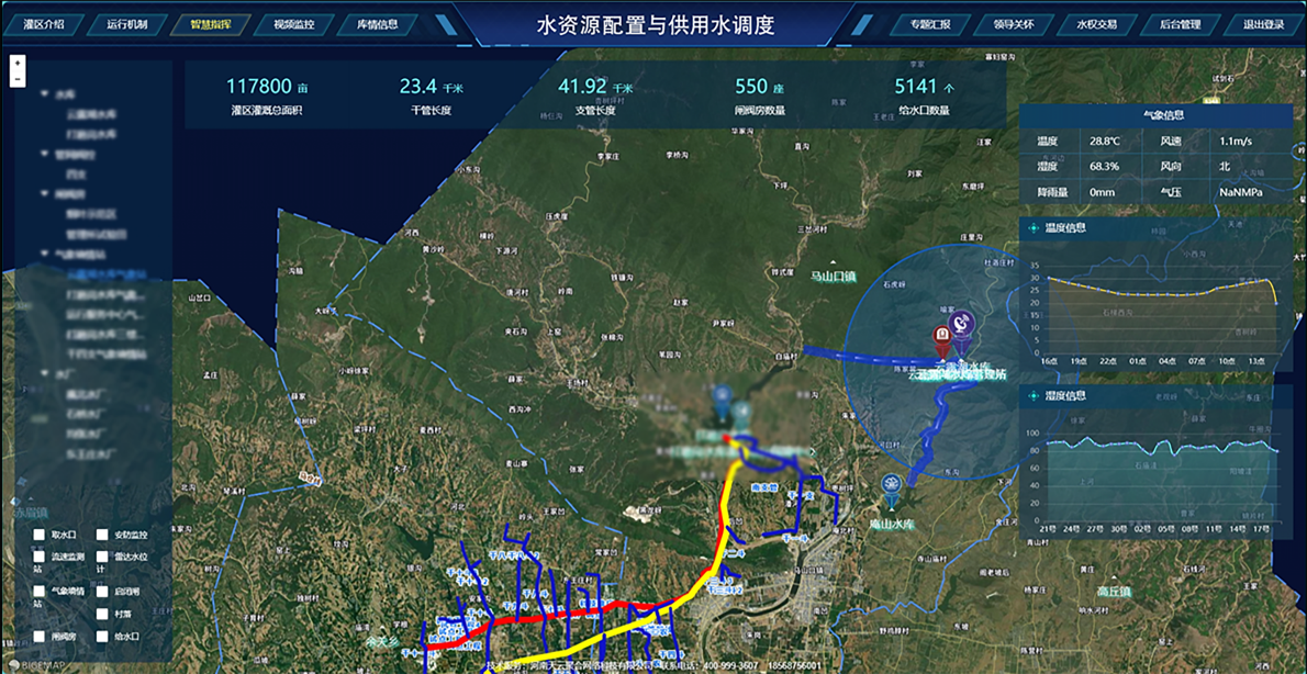 基于數(shù)字地球底座,對灌區(qū)的各類工程信息進行監(jiān)管,實現(xiàn)流域、河流、湖泊、水庫、泵站、溝渠道、取水井、水閘、農(nóng)田等工程的可視化空間展示。
